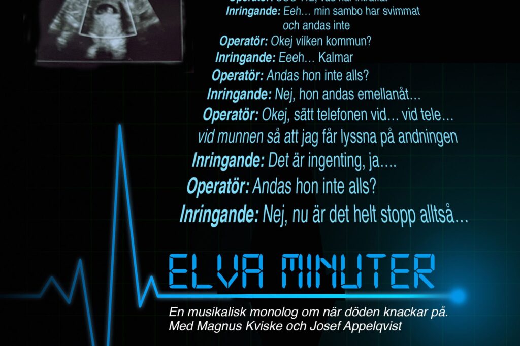 En söndagsmorgon drabbades Magnus sambo av hjärtstopp, 36 år gammal och gravid i sjunde veckan. I 11 minuter höll han henne och barnet vid liv med hjälp av HLR. Nu har händelsen blivit till en föreställning som heter ELVA MINUTER och är en hyllning till en superkvinna, ett barn som överlevde och till livet, oavsett vilka märkliga svängar det kan ta.