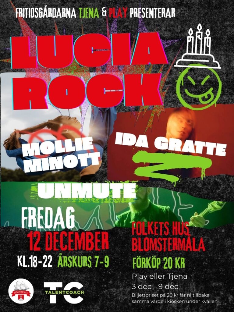 OBS! Tyvärr är evenemanget inställt. Luciarock! Fredagen den 12 december, en musikkväll exklusivt för ungdomar på högstadiet i Mönsterås kommun!