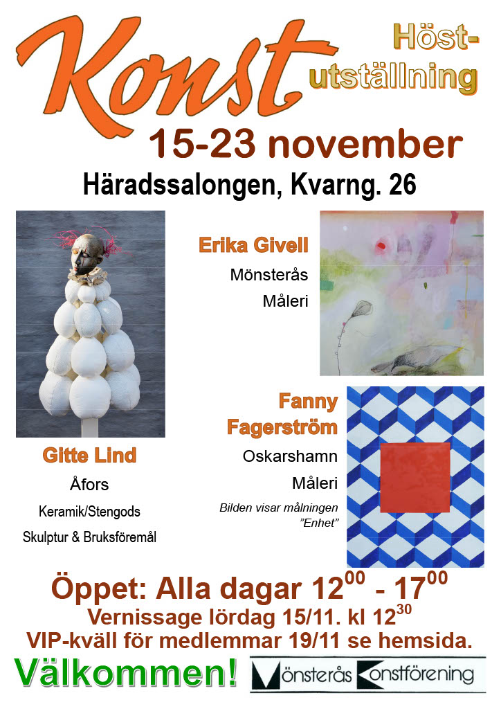 Välkommen till en inspirerande höstutställning på Häradssalongen med Mönsterås konstförening.